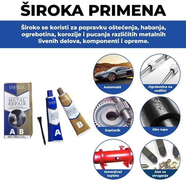 AB pasta za hladno zavarivanje omogućava jednostavno, brzo i trajno spajanje i popravku različitih materijala – bez varenja i bez potrebe za specijalnim alatima. Zahvaljujući dvokomponentnoj formuli, nakon očvršćavanja postiže čvrstoću metala, otporna je na visoke temperature i vlagu, što je čini idealnim rešenjem za sve vrste popravki kod kuće ili u radionici.Ključne prednosti AB paste: