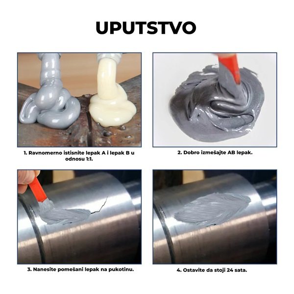 - Dvokomponentna formula: komponente A i B formiraju materijal čvrst poput metala.