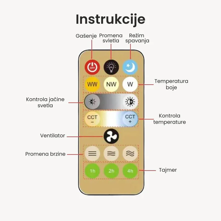 • Daljinski upravljač – kontrola svetla i ventilatora