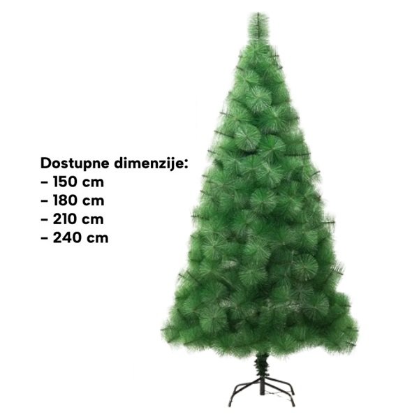 Novogodišnja jelka – tip B sa dugim iglicama i gustim granama pruža prirodan izgled pravog bora. Dostupna u visinama od 150 do 240 cm, idealna je za stvaranje toplog i svečanog prazničnog ambijenta.