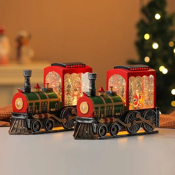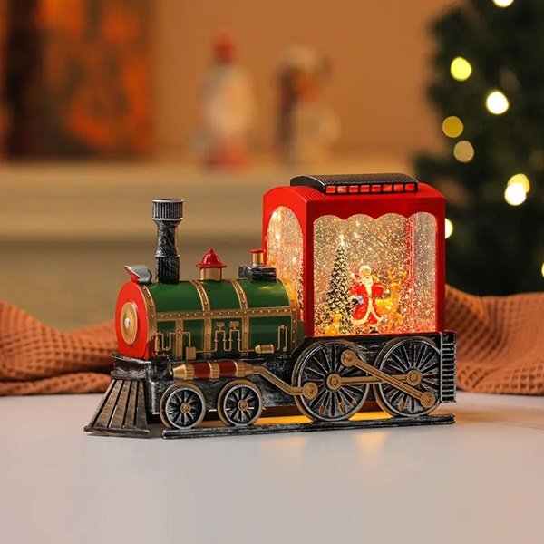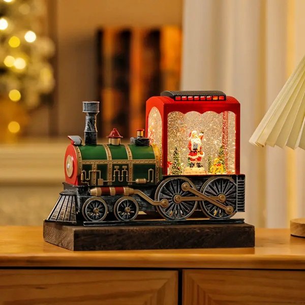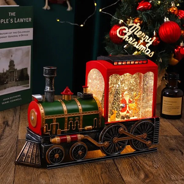 Novogodišnja lokomotiva sa svetlosnim efektima i muzikom unosi duh praznika u vaš prostor, spajajući tradicionalni dizajn sa modernim detaljima. Providni deo lokomotive sadrži Deda Mraza, irvasa i jelku, dok efekat „padanja snega“ podseća na klasične snežne kugle.Ključne karakteristike