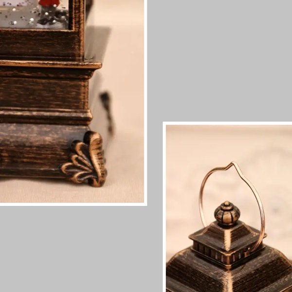 Novogodišnji fenjer sa Sneškom Belićem uz LED svetlo, rotirajuću unutrašnjost i prazničnu muziku stvara čaroban ambijent.