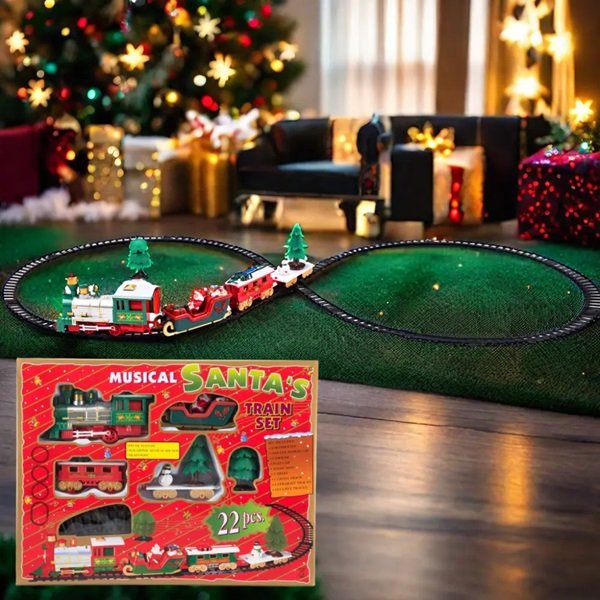 Novogodišnji vozić sa dodacima i prazničnom muzikom – savršen set za čarobnu atmosferu ispod jelke, uz muziku, svetla i bogate dodatke.