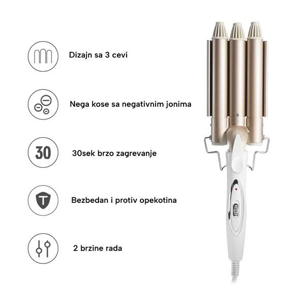 Uz presu za talasastu kosu brzo ćete dobiti moderne cik-cak talase koji traju ceo dan. Jednostavna, sigurna i praktična – savršen dodatak za vaš stil.DA LI VAM MOŽDA TREBA I OVO?