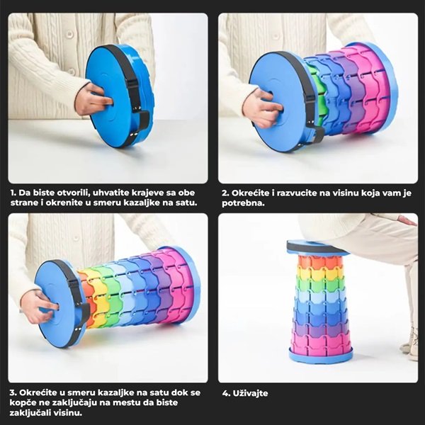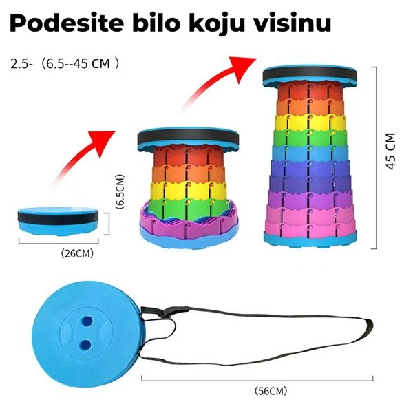 FOLDYSEAT je ultrapraktična sklopiva stolica koja se uvlači/izvlači jednim pokretom. Idealna je za kampovanje, planinarenje, pecanje, festivale, piknik ili čekanje u redovima – svuda gde vam treba brz oslonac bez glomaznog nameštaja.Brzo podešavanje i čvrsta stabilnost