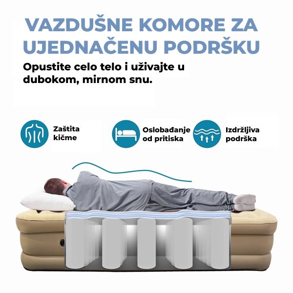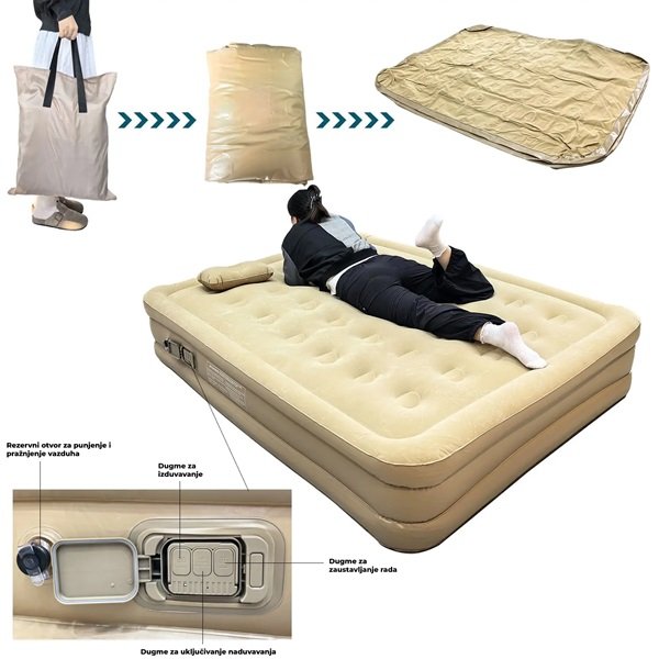 Dupli vazdušni krevet sa automatskom pumpom – udoban, stabilan i spreman za par minuta.