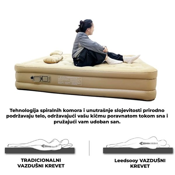 Vazdušni krevet Leedsooy 200×150×40 cm – automatska pumpa, Fiber Tech™
