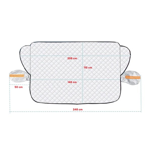 - Univerzalne dimenzije – 160 cm širine (bez navlaka za retrovizore) i 116 cm visine