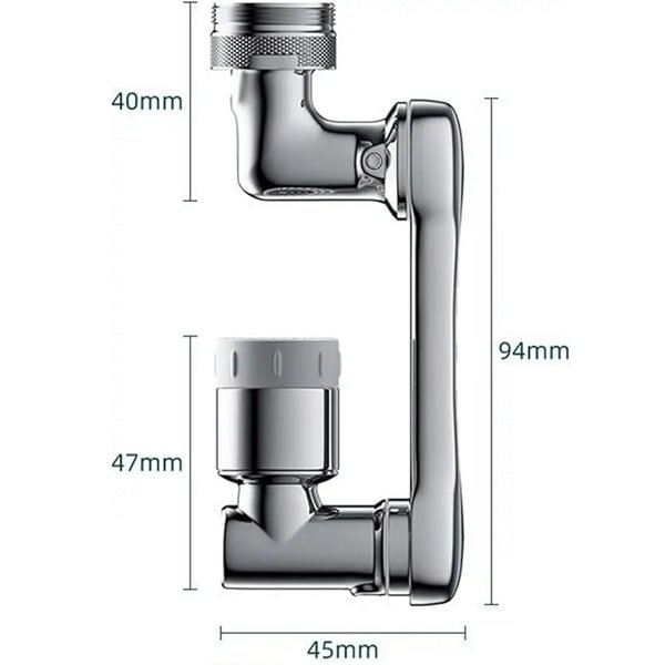Zglobni univerzalni nastavak za česmu olakšava svakodnevne aktivnosti zahvaljujući svojoj fleksibilnosti i jednostavnoj upotrebi. Sa rotacijom od čak 1080°, ovaj nastavak omogućava lako pranje posuđa, voća, povrća, pa čak i kose u kupatilu. Montaža je brza i jednostavna, bez potrebe za alatom.Ključne karakteristike nastavka za česmu
